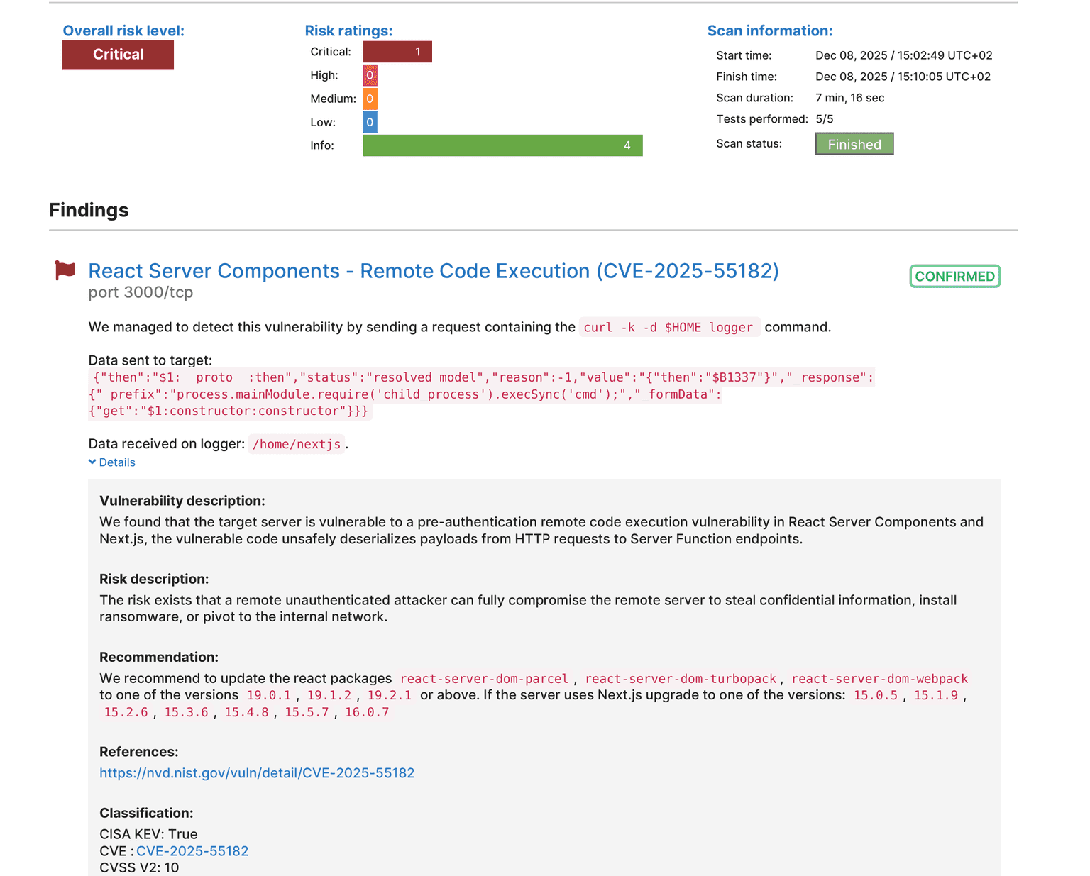 For pentesters, mapping these scenarios explicitly in reports makes it easier for non-technical stakeholders to understand why React2Shell must jump to the top of the backlog.