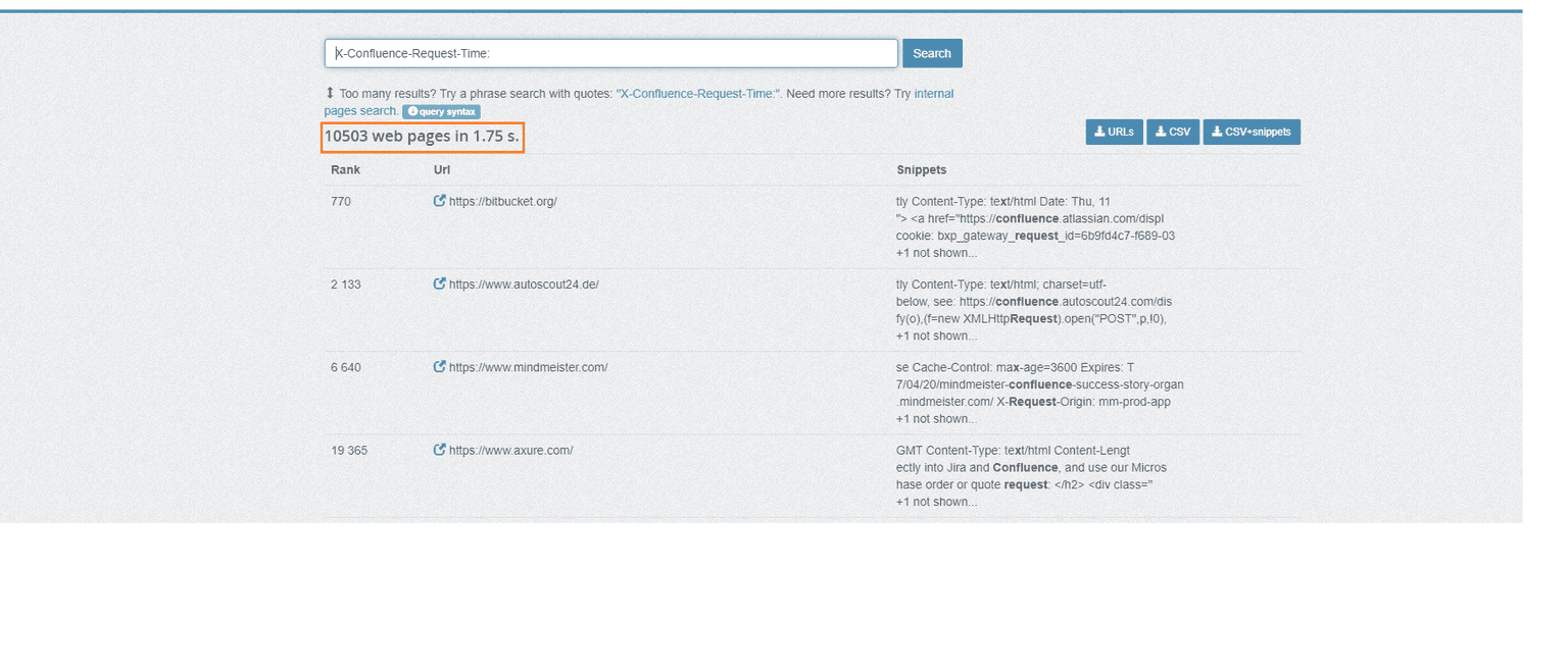 Using the Shodan search engine with the X-Confluence-Request-Time cookie will reveal more potential targets for motivated attackers:
